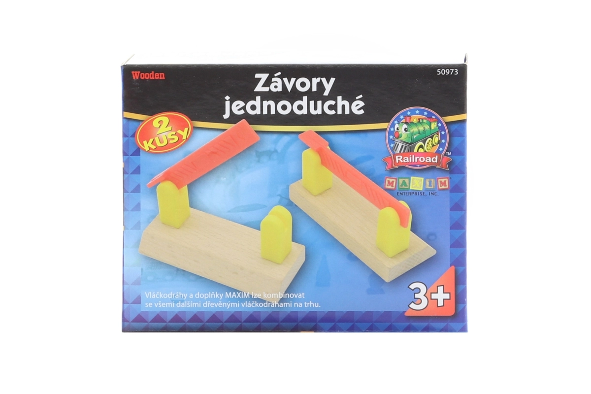 Prácticas y resistentes barreras simples para trenes de madera MAXIM que aumentan la seguridad de los pasos a nivel durante los recorridos rápidos de los trenes. El paquete incluye 2 piezas, adecuadas para niños a partir de 3 años.