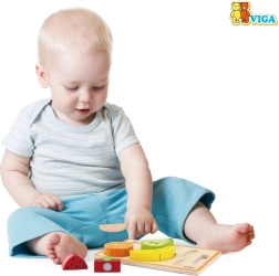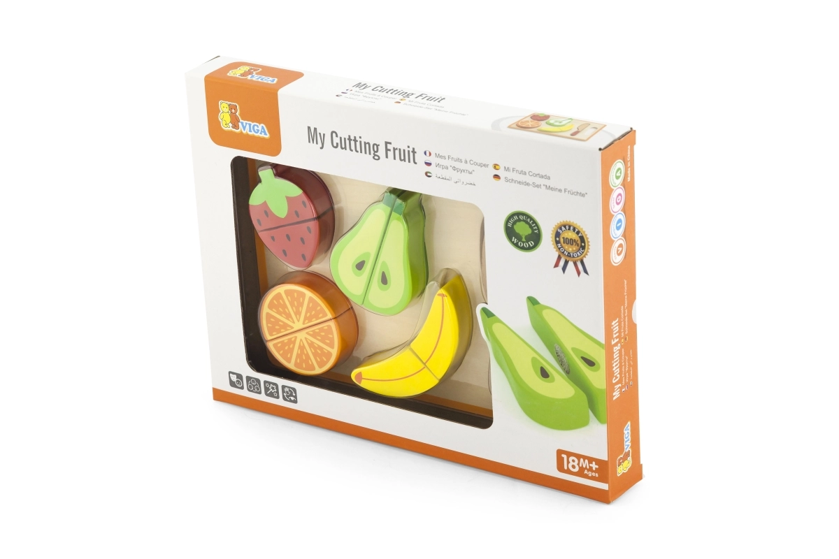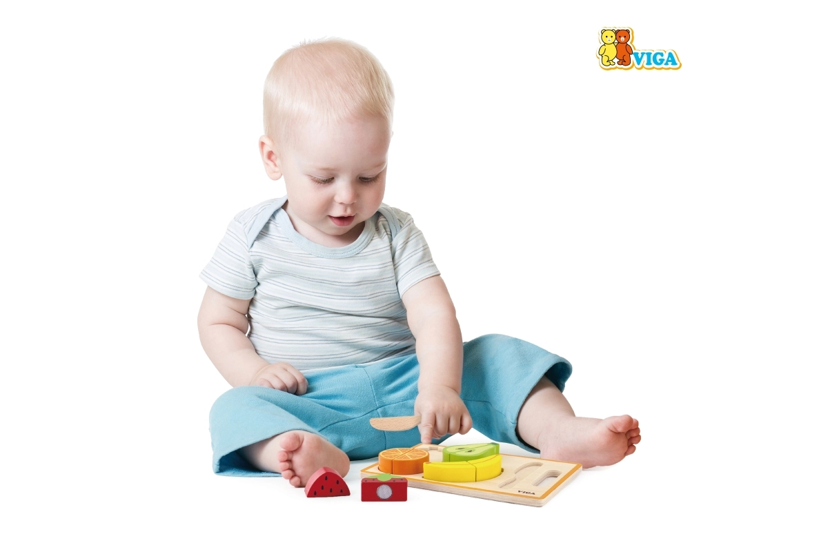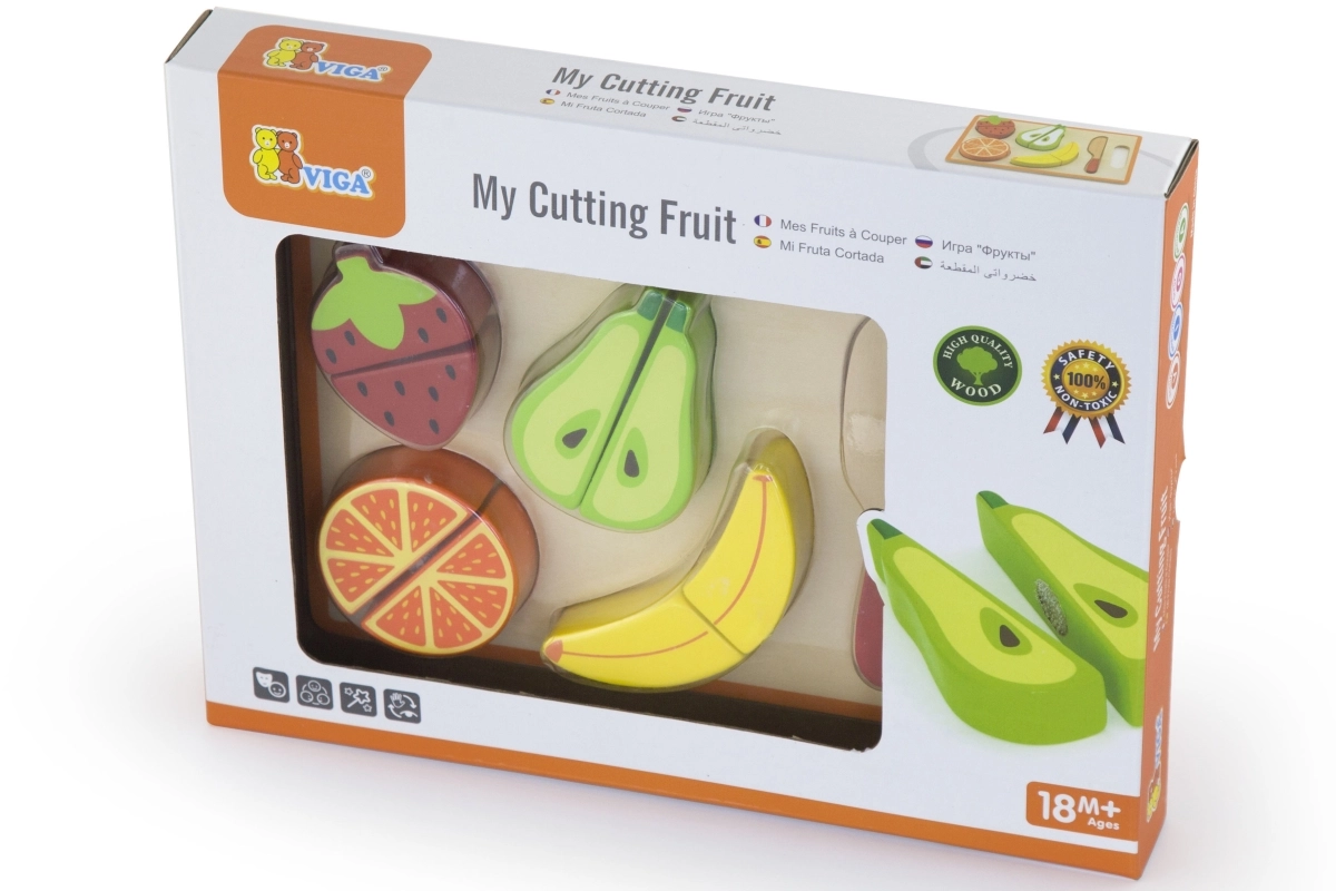 Las frutas unidas con velcro ofrecen una resistencia y un sonido auténticos al “cortar”. Los niños practican el uso seguro del cuchillo y mejoran la coordinación.