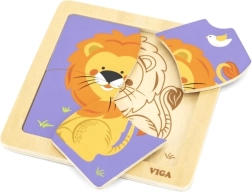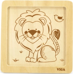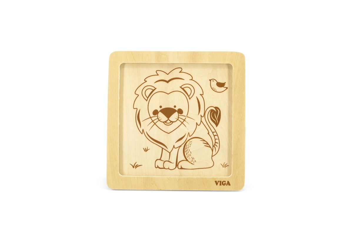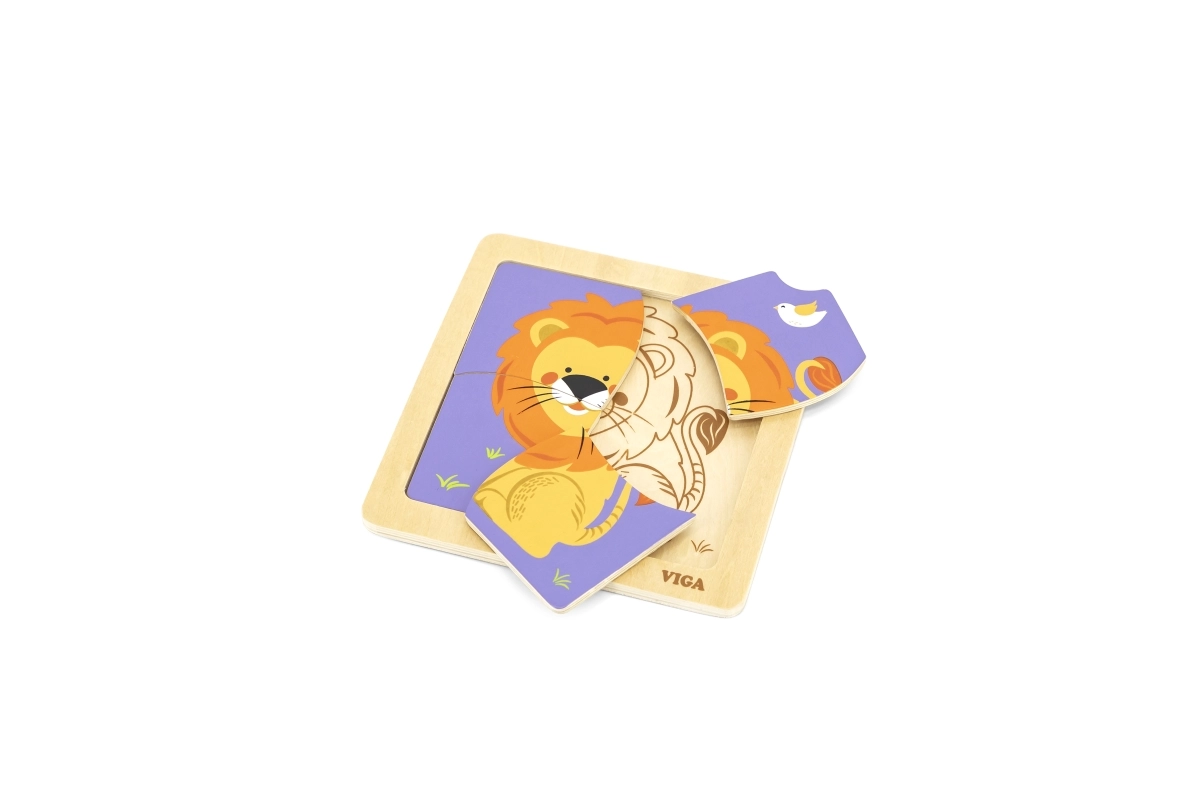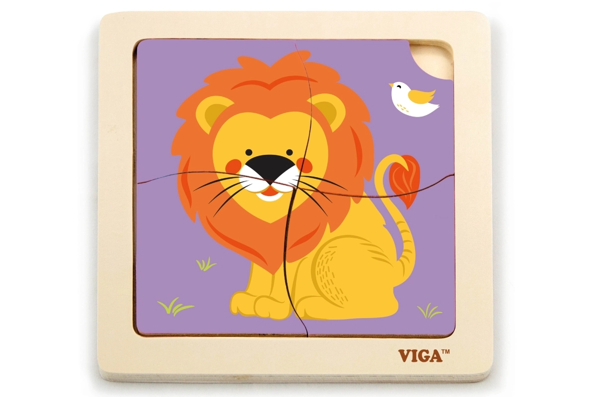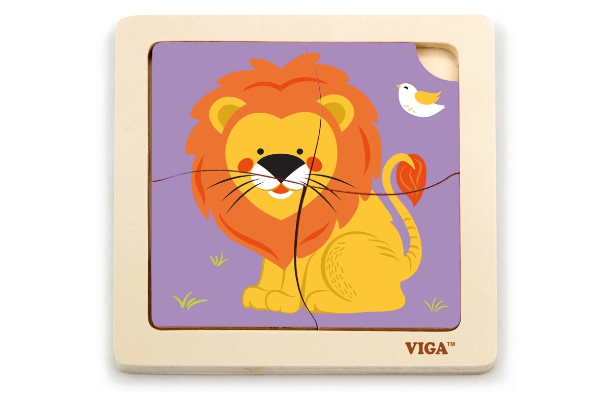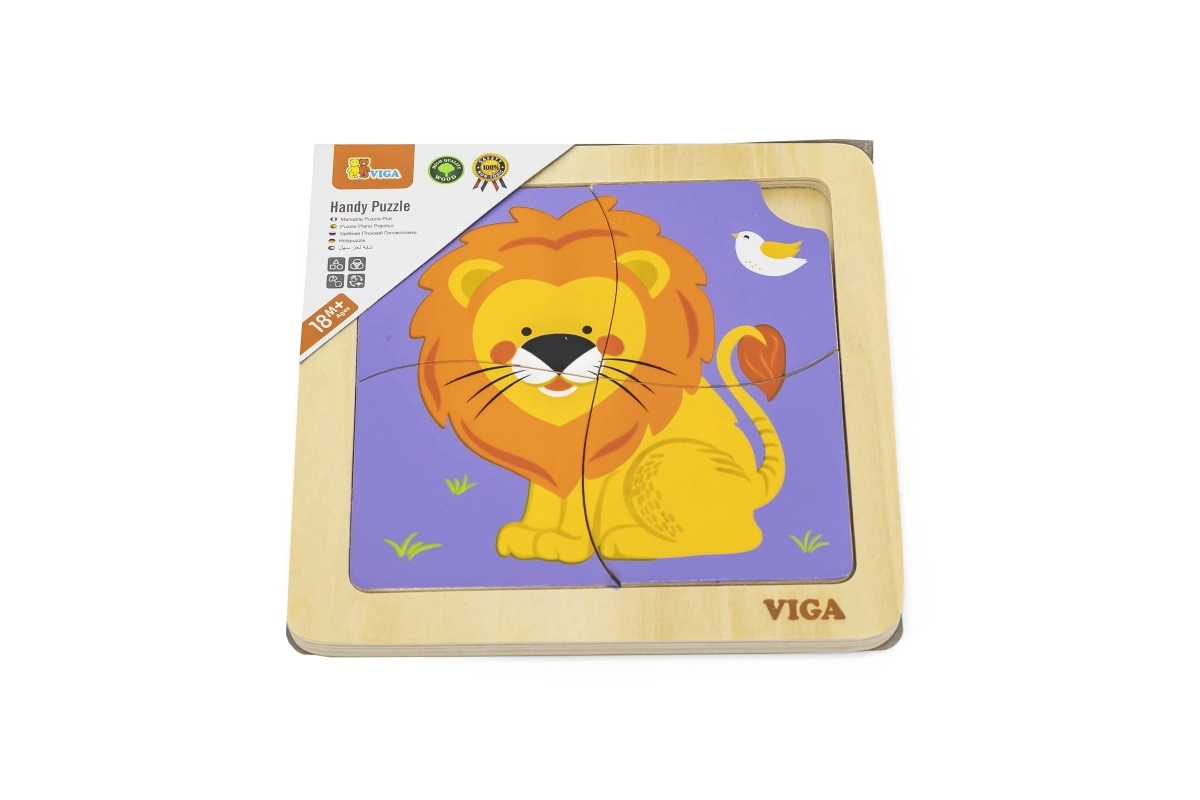 Este rompecabezas de madera de calidad con una alegre imagen de un león está diseñado para manos pequeñas. Gracias a sus cuatro piezas robustas con bordes suaves, los niños aprenden fácilmente a asociar formas y practican la paciencia y la concentración. La práctica base de madera mantiene las piezas en su lugar y facilita el montaje.