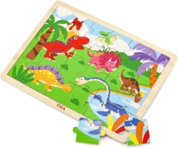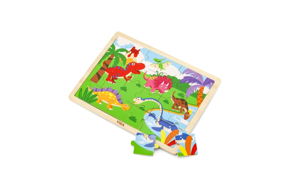Descubre los divertidos rompecabezas de madera con motivo de dinosaurios, que desarrollan la motricidad fina, la concentración y el pensamiento lógico. El set incluye 24 piezas resistentes y es ideal para niños pequeños a partir de 24 meses. Los puzzles tienen un formato cómodo para armar y están hechos de madera de calidad para una larga durabilidad.