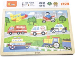 Este rompecabezas de madera con imágenes de medios de transporte es una gran elección para un primer puzzle “más grande”. Gracias a sus 24 piezas, el montaje supone el desafío justo: fomenta la concentración y la satisfacción de completar una imagen de aproximadamente 27,5 × 20 cm. Las ilustraciones coloridas de vehículos (ambulancia, camión de bomberos, coche de policía, barco, avión, etc.) motivan a los niños de forma natural a jugar una y otra vez.