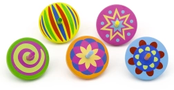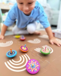 Cada peonza ofrece un conjunto único de colores y patrones que, al girar, generan efectos visuales llamativos.