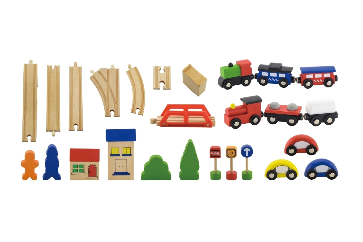 Descubre la diversión para pequeños maquinistas: esta completa pista de tren de madera ofrece hasta 49 piezas para construir y jugar con creatividad. Incluye vías, 2 locomotoras, 4 vagones, 3 cochecitos y numerosos accesorios que fomentan la motricidad fina, la imaginación y la coordinación. Regalo ideal para niños a partir de 3 años.