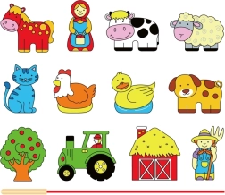 Los bloques representan diversas figuras de granja como animales, tractor, granero y más, estimulando el juego creativo y la narración de historias.