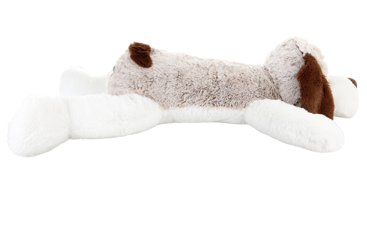 Este gran perrito de peluche tumbado hará las delicias de cualquier niño y amante de los animales. Es agradablemente mullido, suave al tacto y, gracias a su tamaño de 100 cm, es perfecto como compañero para abrazar, almohada para la cabeza o accesorio decorativo para la cuna o el rincón infantil. Su fabricación de calidad y los delicados detalles garantizan un juego seguro y cómodo incluso para los más pequeños.