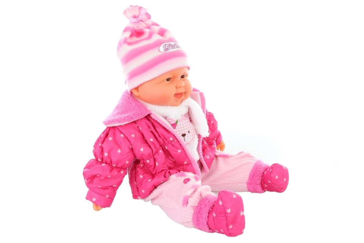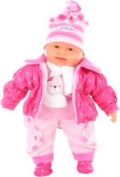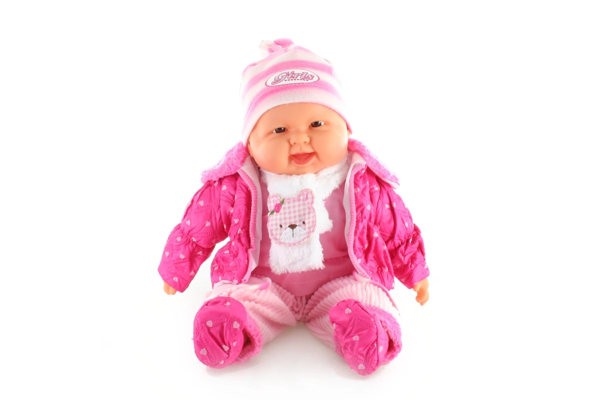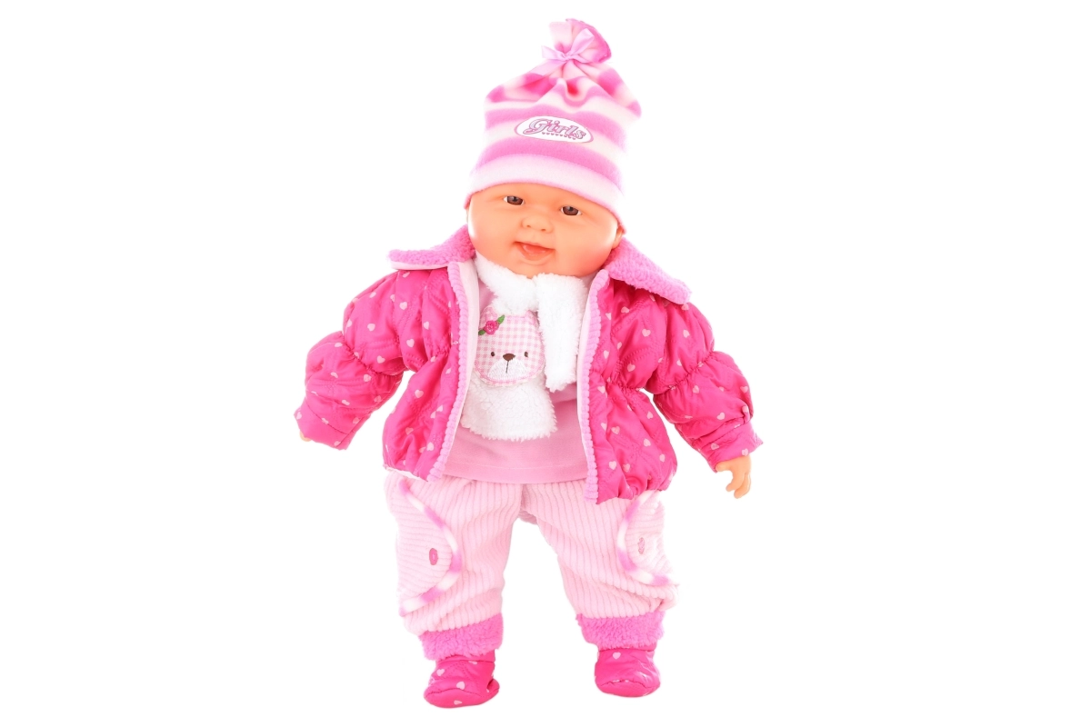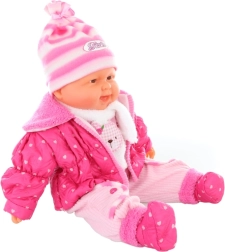 La muñeca tiene una cara detallada y ropa textil de calidad en tonos rosas, adecuada para el juego diario y como regalo. Tamaño aprox. 52 × 30 × 13 cm, garantiza un agarre cómodo incluso para manos infantiles pequeñas.