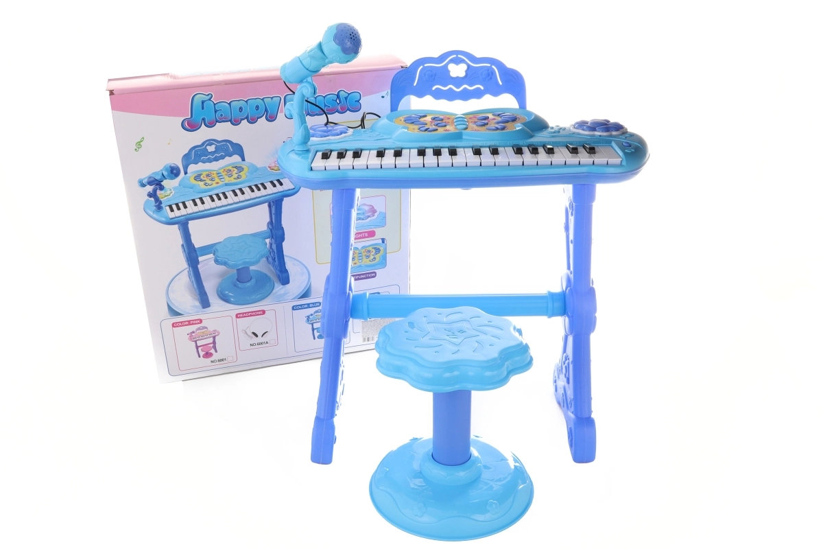 Pianito infantil azul ofrece no solo tonos clásicos, sino también varias melodías de fondo y la posibilidad de cambiar instrumentos musicales. El paquete incluye un micrófono y un conector para reproductor MP3.
