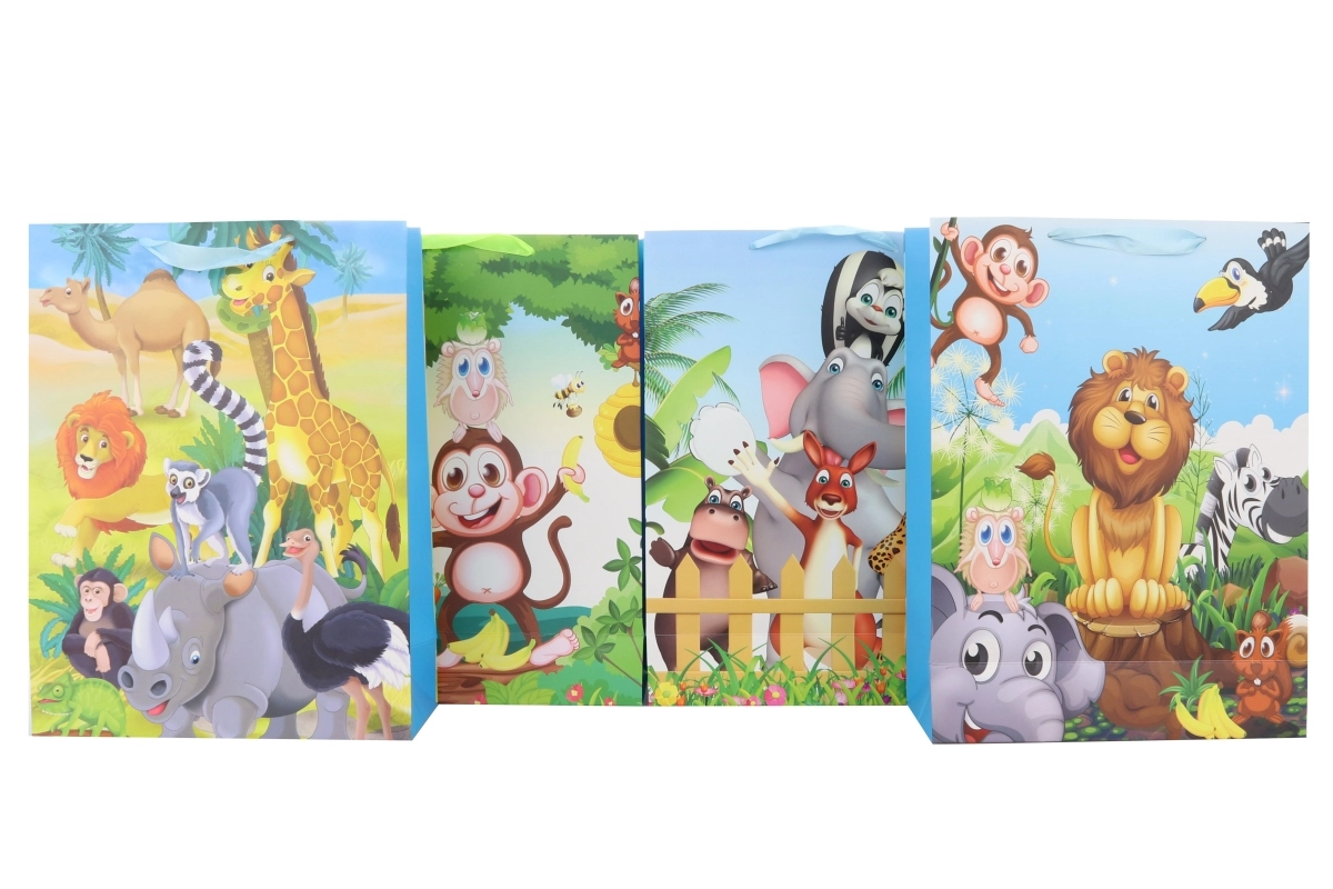 La gran bolsa de regalo con motivos de safari es ideal para envolver obsequios más voluminosos. Los diseños atractivos con animales exóticos aportan un aspecto excepcional al regalo y ahorran tiempo al envolver. La bolsa es adecuada tanto para niños como para adultos y es perfecta para cumpleaños, celebraciones o festividades.