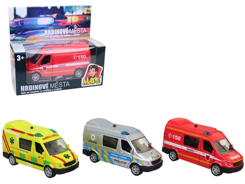 Descubre la diversión llena de acción con la serie de cochecitos Héroes de la ciudad de la línea City Collection. El coche de rescate con mecanismo de retroceso ofrece un juego realista gracias a los efectos luminosos y sonoros. Hay 3 tipos disponibles: ambulancia, policía y bomberos. Funciona con 2 pilas LR41.