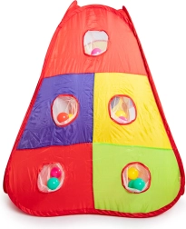 Divertido conjunto de juego para niños con colorida tienda, túnel y piscina seca de bolas para jugar en casa o en el jardín. Incluye 100 bolas de colores, canasta para encestar y paredes con dianas con 3 pelotas con velcro. Estructura auto-desplegable, montaje rápido y funda de poliéster ligera que garantizan un uso fácil y muchas horas de diversión activa.