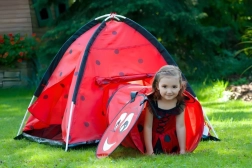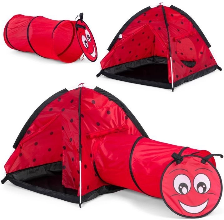 Convierte una habitación o el jardín en un lugar lleno de aventuras. La tienda infantil con motivo de mariquita invita a los niños a explorar y a jugar de forma creativa. La estructura tipo iglú con una entrada y conexión para túnel fomenta el movimiento, el gateo y el escondite, desarrollando la motricidad y la imaginación. Gracias al armazón ligero, la tienda se transporta fácilmente para que los niños la disfruten en cualquier lugar.