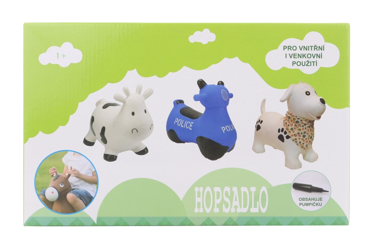 Adorable saltador de goma con forma de perrito que ofrece a los niños mucha diversión y movimiento. Gracias a su estructura estable, capacidad de carga máxima de 50 kg y altura del asiento de 27 cm, es ideal para las primeras aventuras de salto. Incluye una bomba práctica para inflarlo rápidamente.