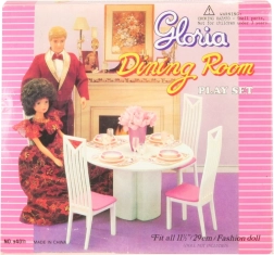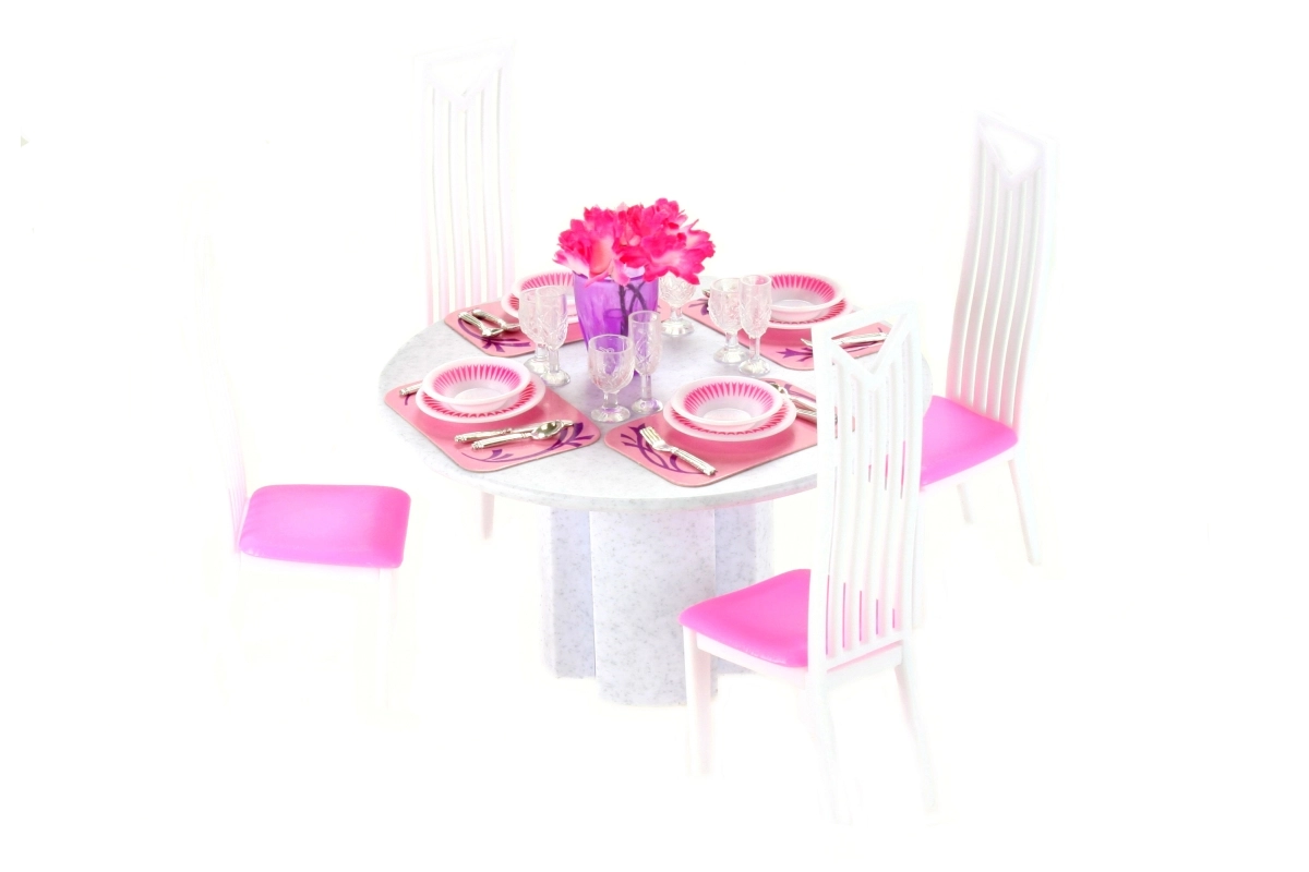 El elegante set de comedor para muñecas Glorie convierte cada juego infantil en un banquete realista. Incluye una mesa redonda, 4 sillas y 4 juegos completos de vajilla. Ideal para el juego creativo y el desarrollo de la imaginación de los niños a partir de 3 años.