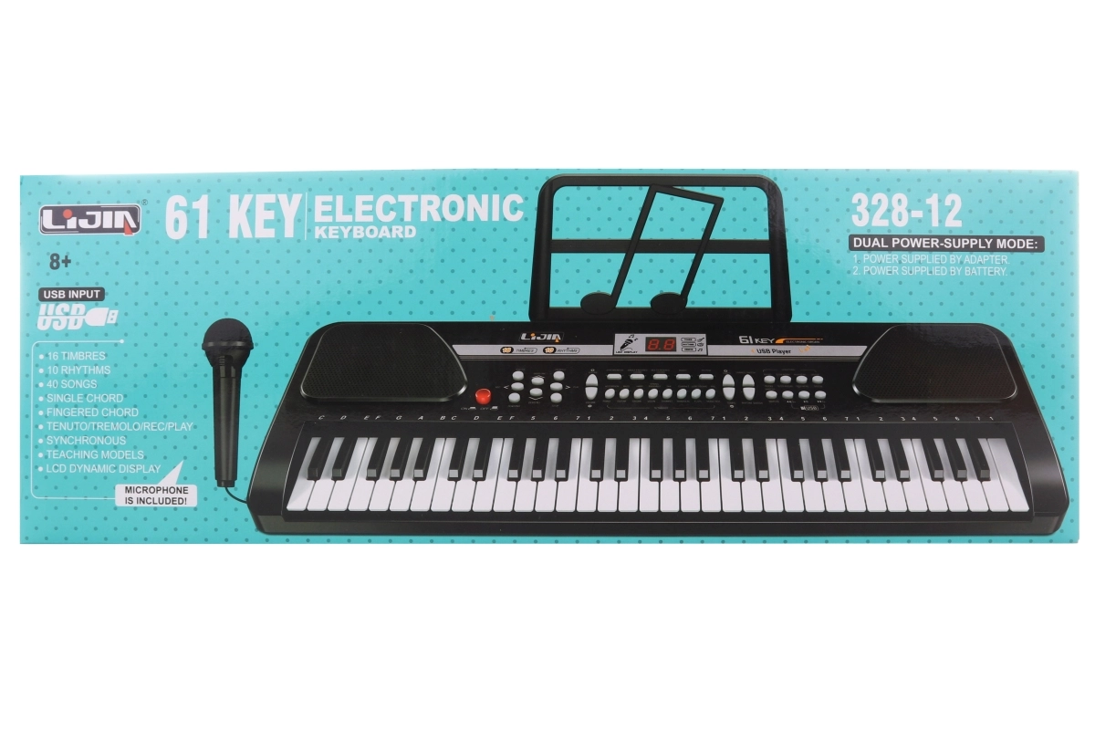 Descubre la diversión y la creatividad con este piano electrónico compacto de 61 teclas. Ofrece diversas melodías de acompañamiento, opción de cambio de sonidos de instrumentos, micrófono integrado y conector USB para opciones ampliadas de conexión. Ideal para principiantes y jóvenes músicos a partir de 8 años.