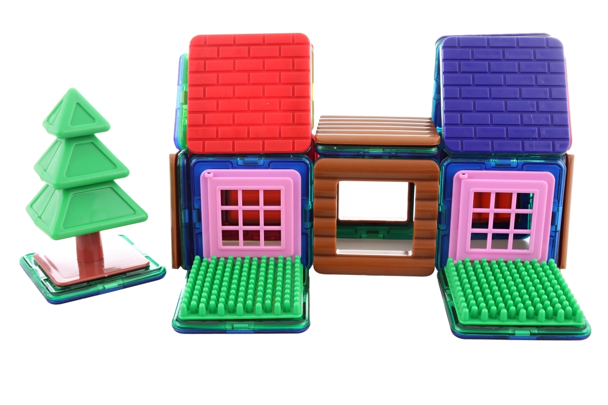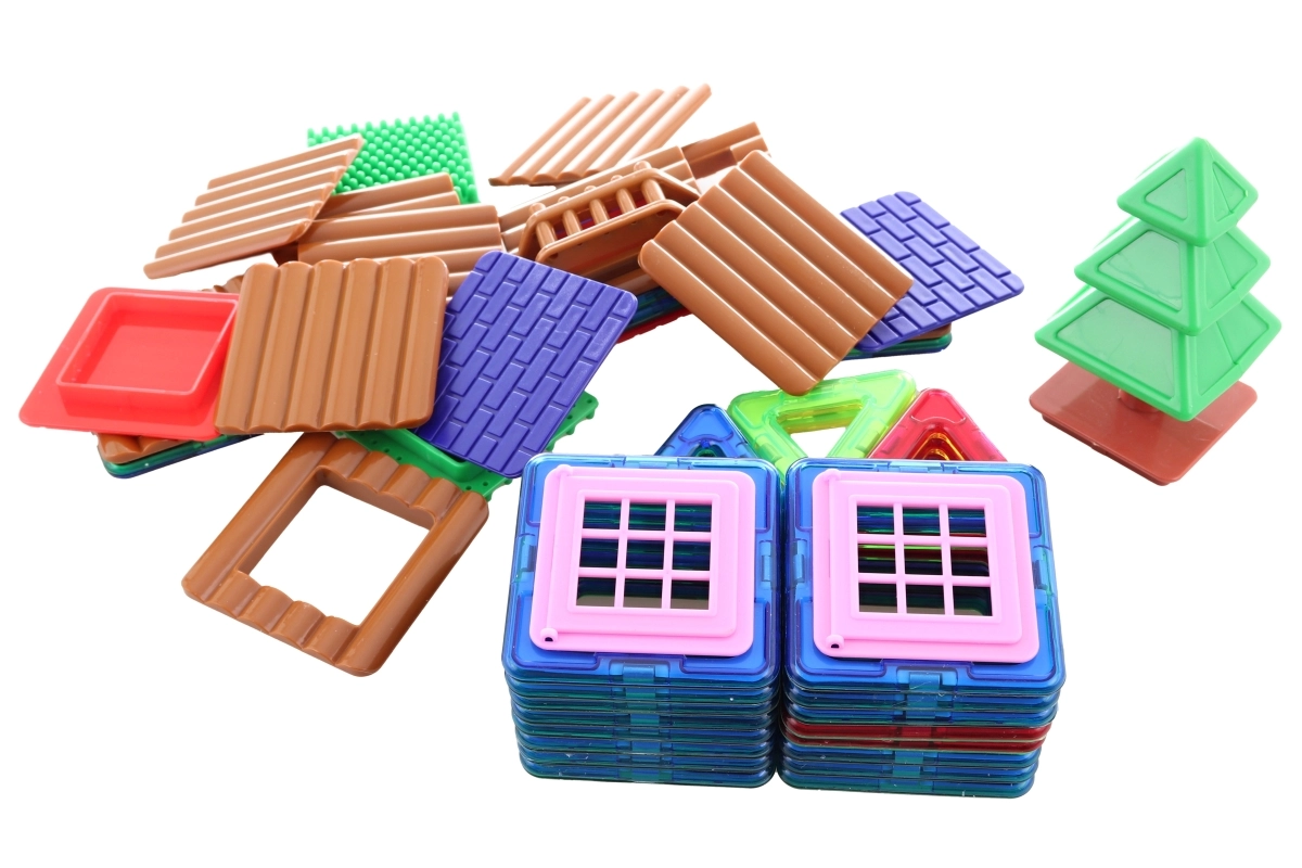 Las 48 piezas magnéticas de colores permiten a los niños construir casas, torres y modelos originales, desarrollando la imaginación en cada juego.