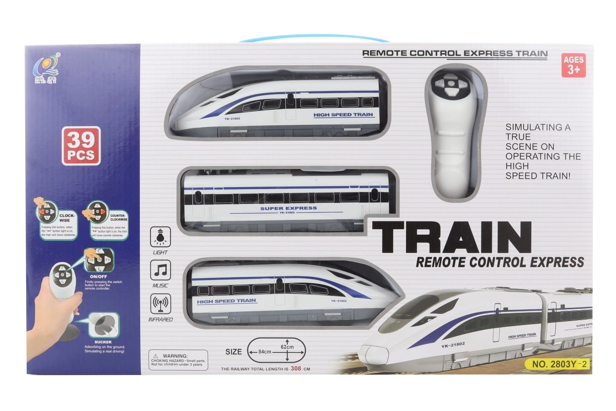 Esta pista de tren brinda una experiencia realista de conducción de tren directamente en tu sala de estar. Contenido del paquete: tren bala a pilas, vías, señales y otros accesorios. El tren y el control remoto requieren 3 y 2 pilas AA, que no están incluidas.