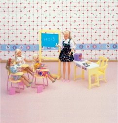 Con el set Glorie aula escolar, cualquier habitación infantil se convierte en un pequeño aula. Los niños pueden jugar a ser profesores y alumnos, escribir en la pizarra, corregir exámenes y prepararse para la escuela. Los abundantes accesorios garantizan largas horas de diversión y el desarrollo de habilidades sociales.