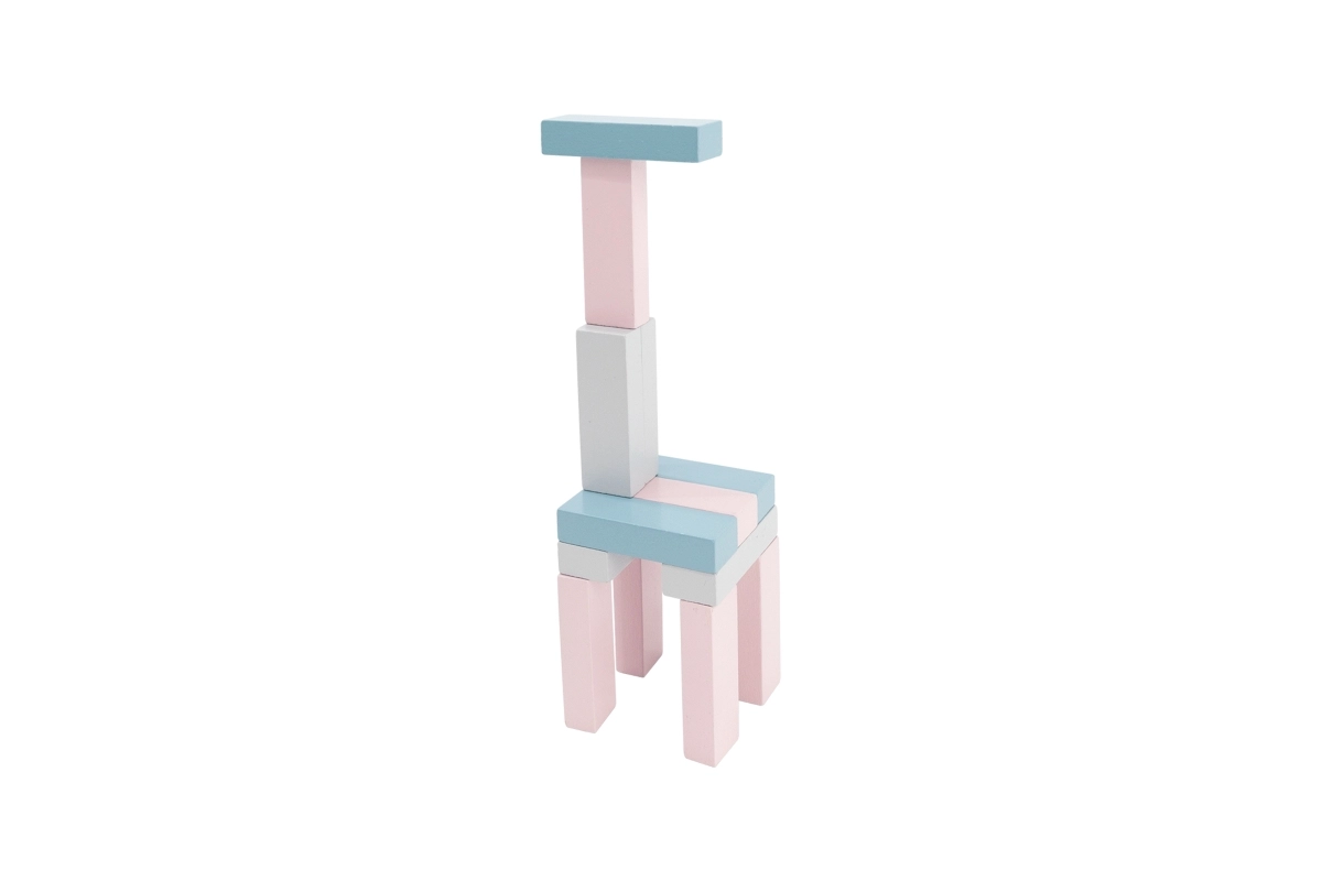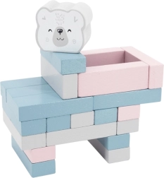 El set incluye 56 bloques de madera y 2 dados para muchas variantes de juego.