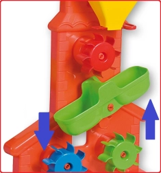 Este resistente molinillo es un gran compañero para el arenero y para jugar con agua. Los niños pueden verter arena o agua en la amplia tolva con regulación y observar cómo las tres ruedas de colores cobran vida y giran. El canal divisor ayuda a dirigir el flujo y fomenta la experimentación.