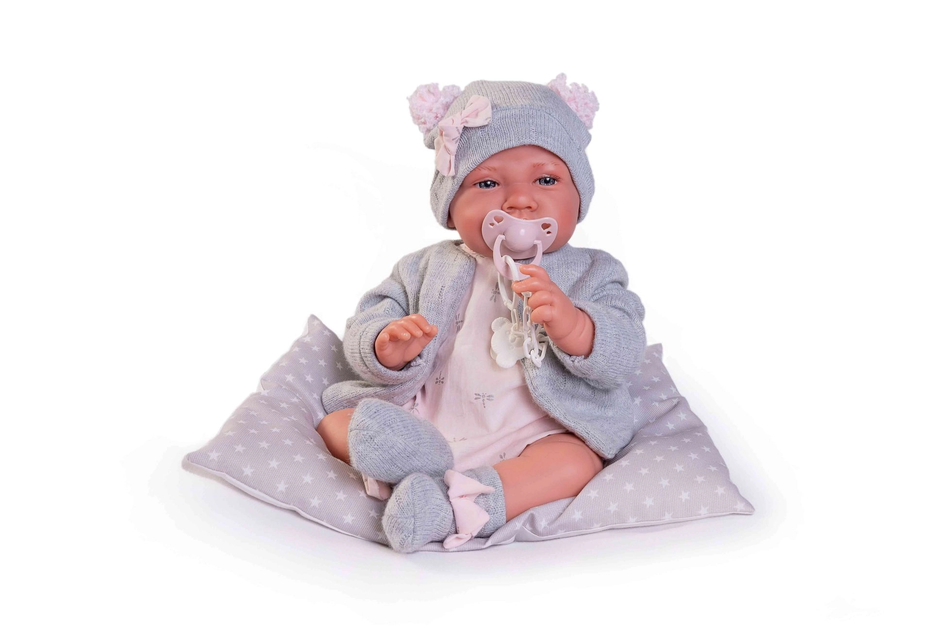Presentamos la muñeca española realista hecha a mano por Antonio Juan. Gracias a su avanzada construcción con articulaciones en brazos y piernas, la muñeca permite diversas posturas, incluido el sentado autónomo. El cuerpo de tela suave ofrece una agradable sensación al tacto y el vinilo especial suavizado garantiza seguridad y expresiones auténticas.