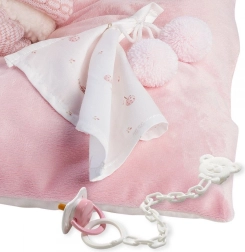 Incluye chupete sujeto con una cadena blanca y una manta rosa suave para una experiencia de juego más completa.