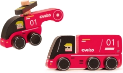 - Set de 2 piezas: camión de bomberos (12 cm) y helicóptero (10 cm)