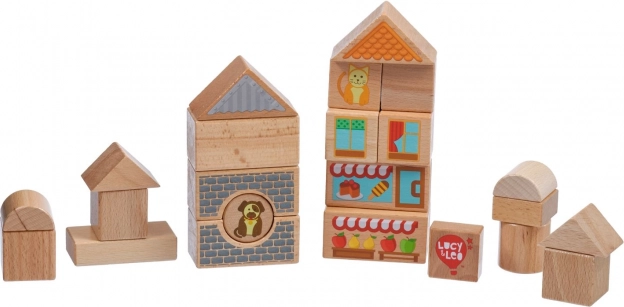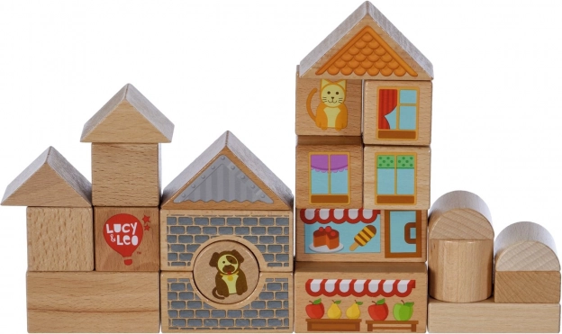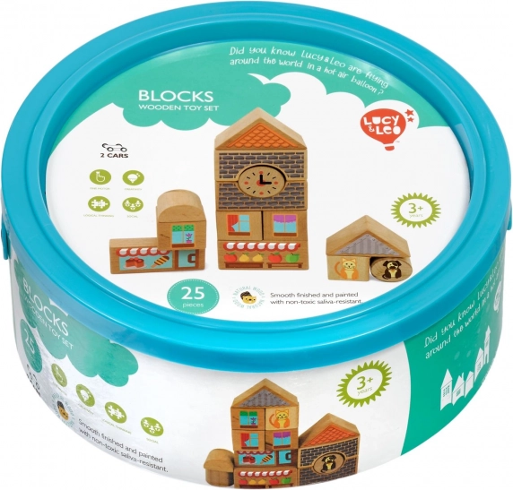 Descubre la magia de la construcción creativa con el set de madera Lucy & Leo ciudad. El conjunto incluye 25 piezas de madera de alta calidad, entre ellas 2 cochecitos con ruedas, de diferentes formas y colores para construir casitas y calles. Los elementos ilustrados como ventanas, tejados y escaparates estimulan la imaginación y el juego temático. El juguete favorece la motricidad fina, el pensamiento lógico y la creatividad, y tras jugar puedes guardarlo fácilmente en un práctico cubo redondo con tapa y asa.