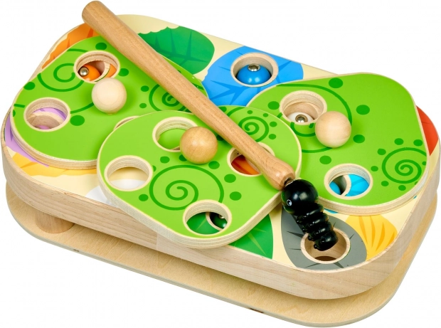 El divertido y educativo juego Lucy & Leo atrapando orugas desarrolla la motricidad fina, el pensamiento lógico y la coordinación mano-ojo. Con la ayuda de una varita magnética, los niños atrapan orugas de colores en los orificios del tablero de madera y prueban distintos niveles de dificultad con plantillas intercambiables y hojas giratorias.
