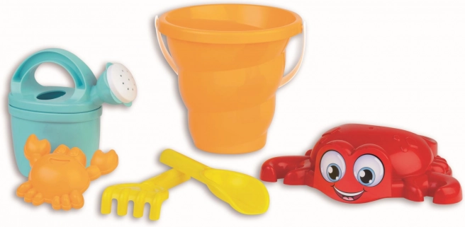 Te presentamos un set de arena de 6 piezas que dará vida a cualquier juego en la playa o el arenero. Incluye un cubo con forma de concha, un colador con el motivo de un alegre cangrejo, un molde con forma de cangrejo, una práctica regadera, una pala y un rastrillo, lo que garantiza horas de diversión creativa para tus niños.