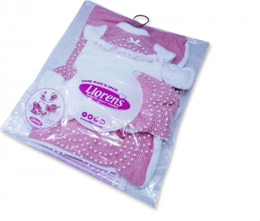 Elegante conjunto de 3 piezas para la muñeca NEW BORN de la marca Llorens, para tamaño 40–42 cm, que encantará a cualquier pequeña cuidadora. El set incluye piezas combinadas y una base decorativa con orejitas, está fabricado en España y se entrega en un práctico embalaje con percha. Ideal para el juego creativo y cambiar la ropa de las muñecas a partir de 3 años.