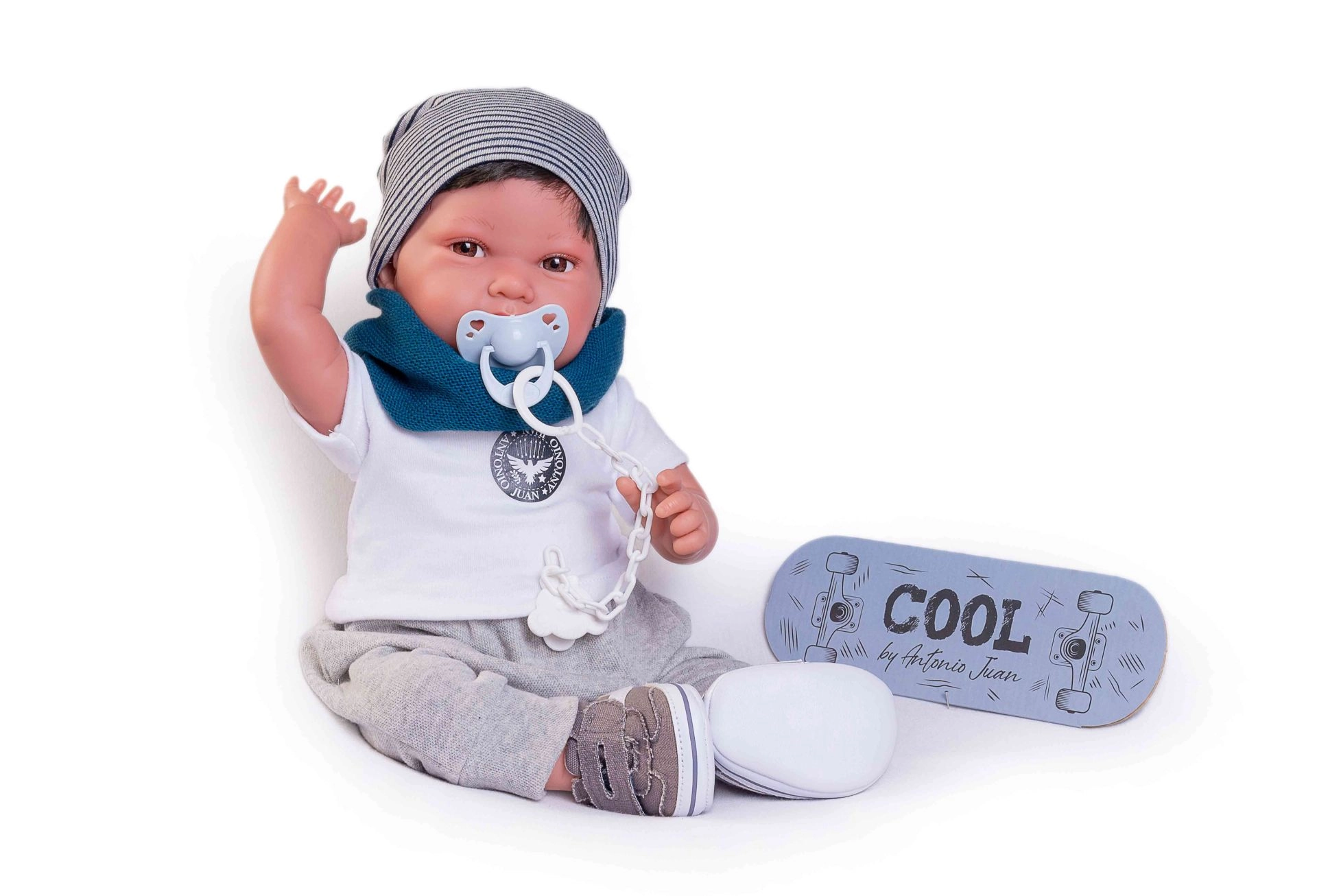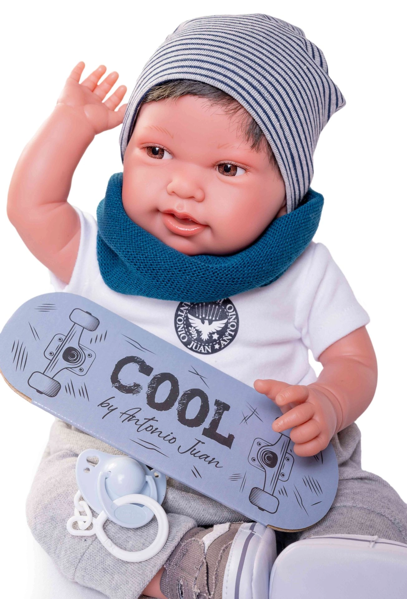 La muñeca bebé realista Antonio Juan Pipo Hair encanta por su expresión suave, rasgos detallados y la posibilidad de un posicionamiento natural gracias a las articulaciones de brazos y piernas. La combinación de un cuerpo de tela blando y vinilo suave en la cabeza y las extremidades garantiza un tacto muy agradable y un aspecto auténtico.