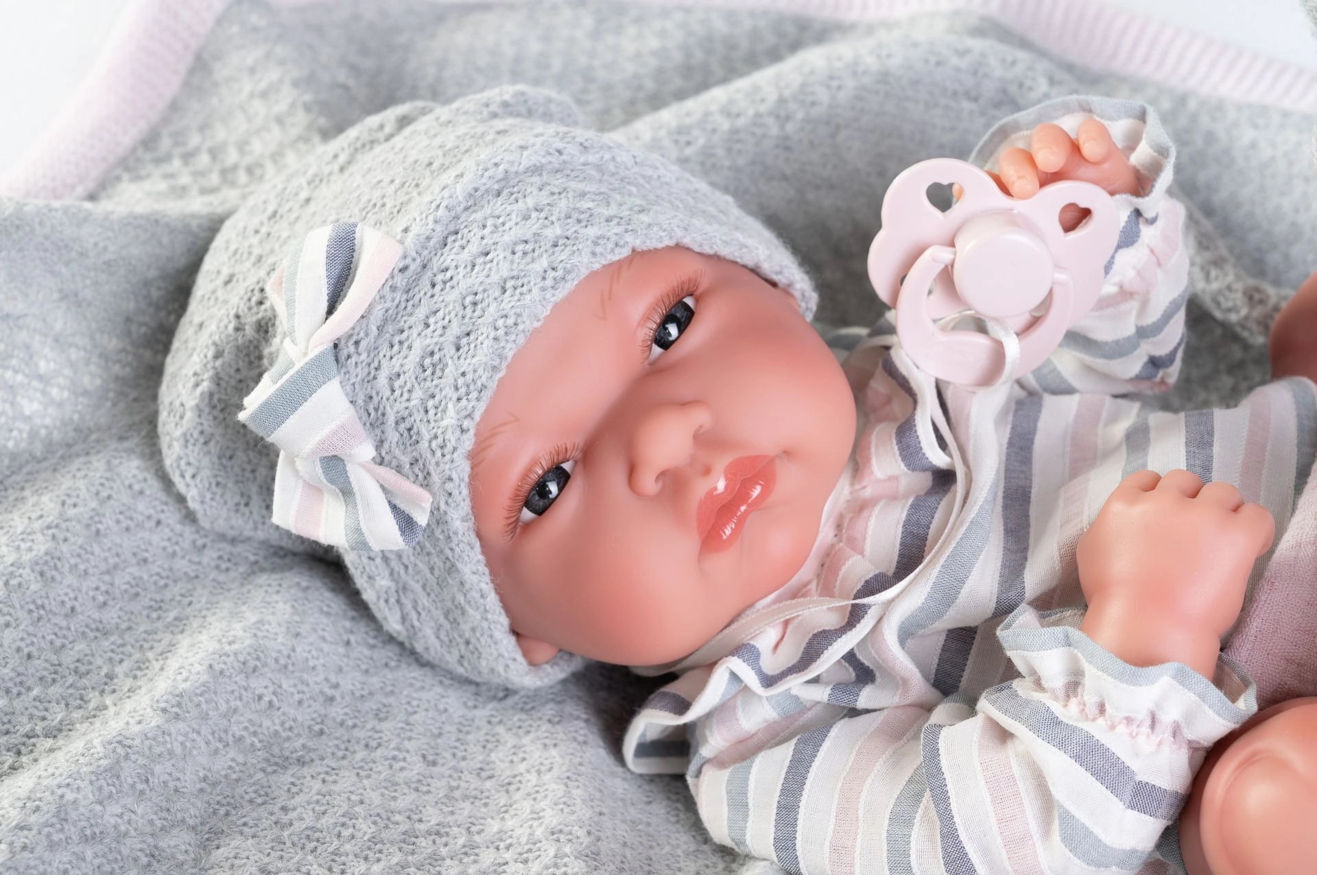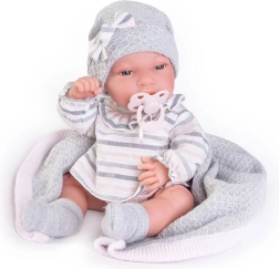 El adorable bebé ANTONIO JUAN con cuerpo de vinilo completo de 33 cm encantará a todas las pequeñas cuidadoras. Está hecho de vinilo especial ablandado, tiene detalles realistas de un recién nacido incluido el sexo y se puede bañar sin preocupaciones (excepto la zona de las pestañas). Incluye caja de regalo y una elaboración de calidad con énfasis en la ecología y materiales sostenibles.