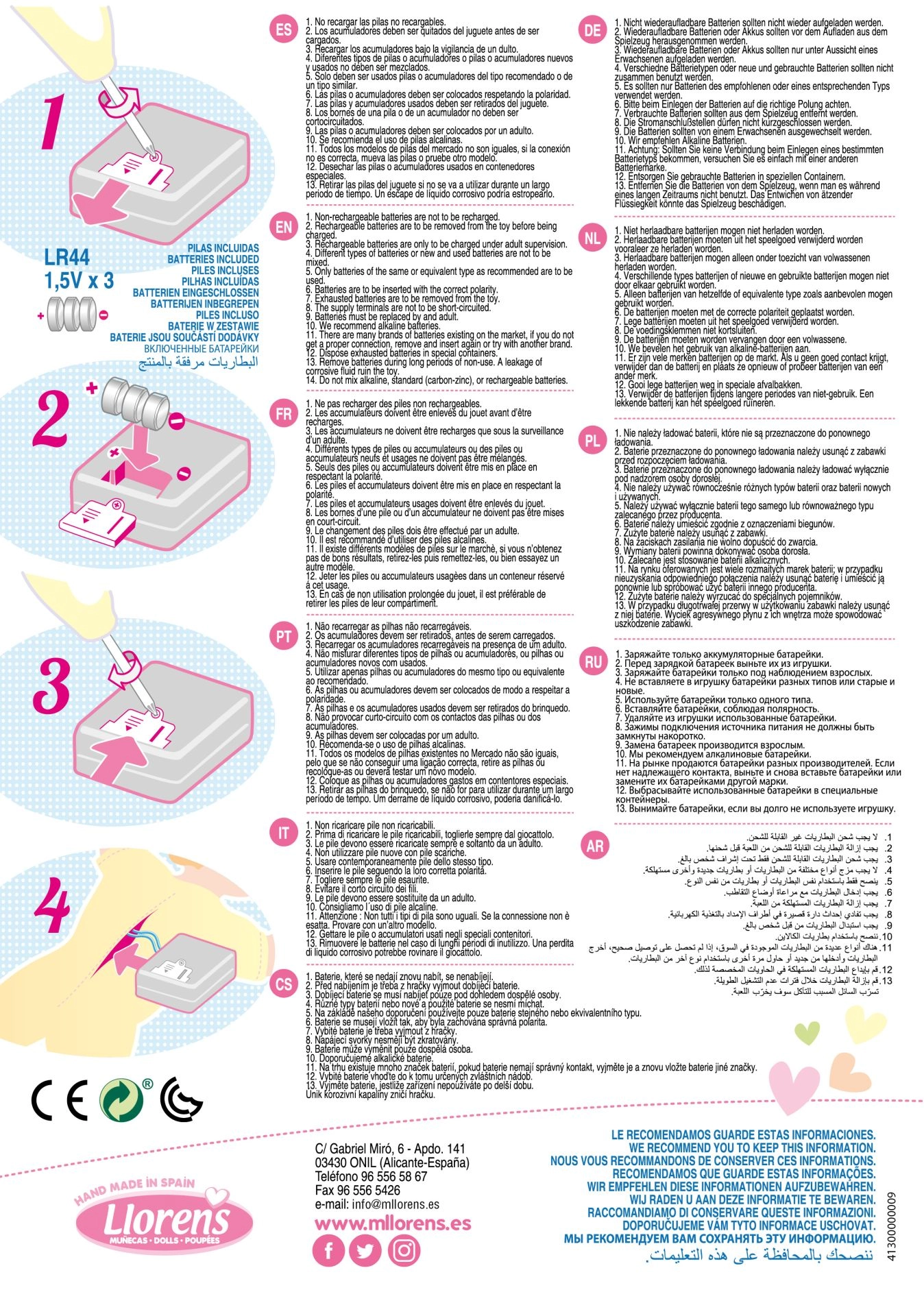 El muñeco mide 42 cm y se fabrica artesanalmente en España. Además de la ropa básica, es posible adquirir ropa original adicional de la oferta de Llorens para muñecos de este tamaño. Un regalo ideal para niños a partir de 3 años, presentado en una caja de regalo.
