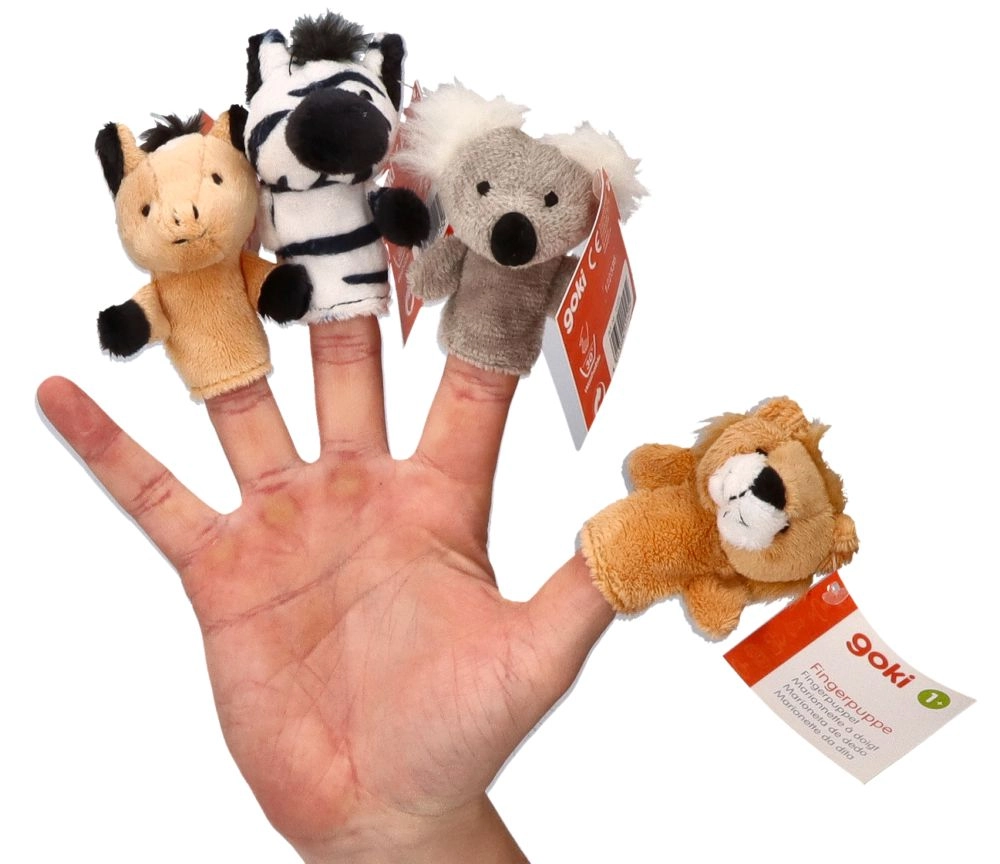Descubre la magia del juego dramático con estos coloridos títeres de dedo: desde el león y la cebra hasta la jirafa. El material textil extra suave es agradable al tacto y seguro para los niños; su tamaño de 7,5–8,5 cm se adapta a la mayoría de deditos. Un set ideal para jugar en casa, para preescolar e incluso para ejercicios de logopedia.