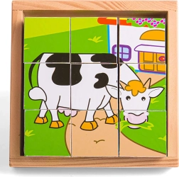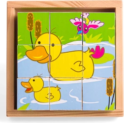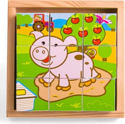 Los Cubos con imágenes Animales ofrecen a los niños un divertido descubrimiento a través del juego. Nueve cubos de madera de alta calidad crean seis motivos diferentes que estimulan la percepción visual y el pensamiento lógico. Gracias a su fabricación robusta, los cubos se adaptan bien incluso a las manos más pequeñas.