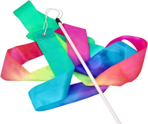 La cinta multicolor crea bonitos patrones al girar y ondear, lo que motiva a los niños al movimiento y la constancia.