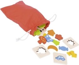 El juego táctil Reconoce las formas en marco está elaborado con madera natural de alta calidad. Incluye 16 marcos de 5,9 x 5,9 cm y 16 formas recortadas de colores que estimulan el tacto y las percepciones sensoriales de los niños. Mediante un sencillo encaje y la búsqueda de formas en la bolsita, se consigue un aprendizaje divertido. El juego puede jugarse de varias maneras, incluida la búsqueda de formas solo por el tacto, lo que añade encanto.