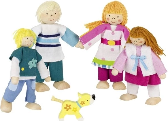 Descubra el encantador set de GOKI para el juego creativo: cinco figuras detalladas, incluido un perrito. Las muñecas son articuladas, pueden sentarse, estar de pie y tumbarse, y son ideales para casas de muñecas o para juego independiente. Fabricadas en madera y textiles, con énfasis en la seguridad y la calidad.