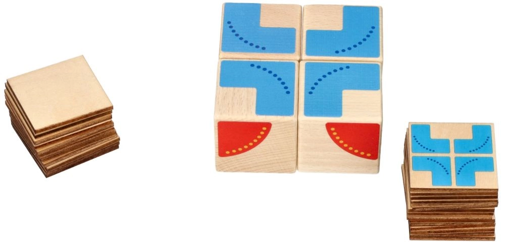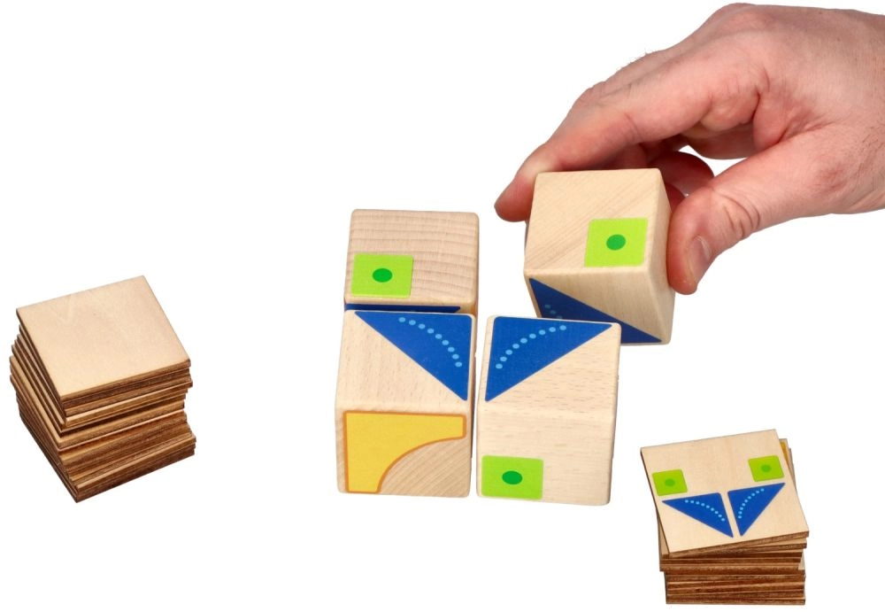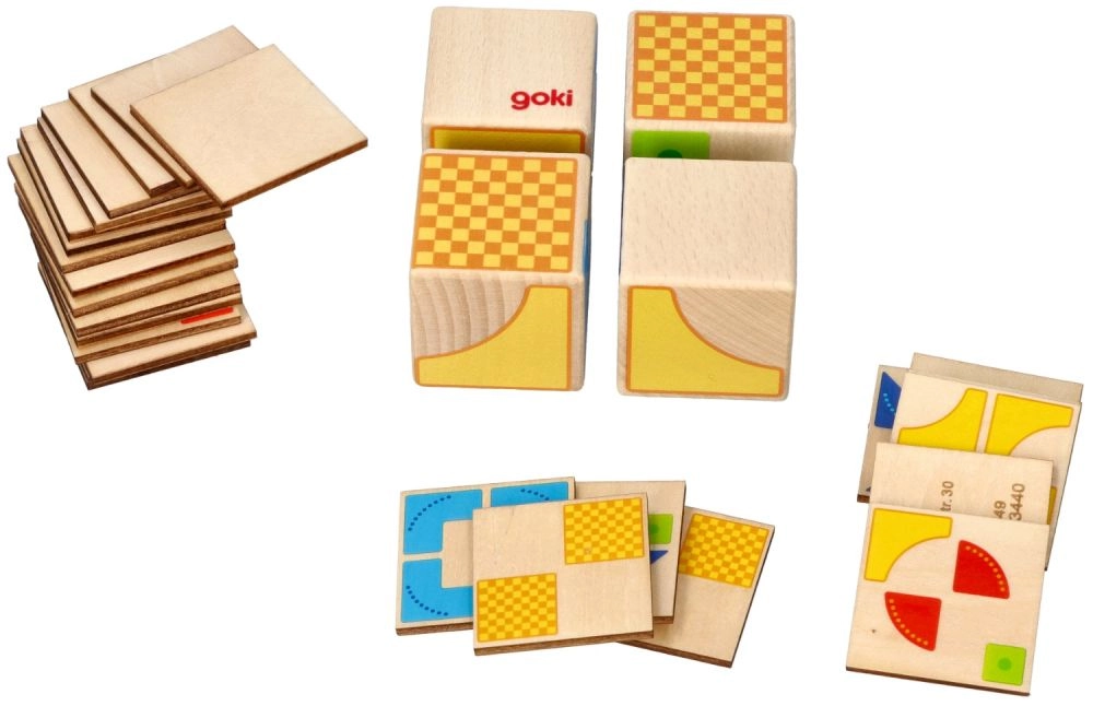Este juego didáctico, aparentemente sencillo pero ingenioso, de la marca GOKI ofrece 26 plantillas con las que los niños combinan 4 cubos de madera en distintos patrones. Ideal para preescolares y niños de primaria: cada ejercicio entrena la imaginación espacial, la concentración y la paciencia.