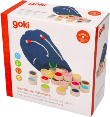 El memorama táctil de madera es ideal para estimular las sensaciones hápticas y sensoriales. Las fichas, con forma de cilindros de madera maciza, tienen un diámetro de 4 cm y presentan 16 superficies diferentes. El juego puede jugarse con los ojos cerrados como un reto para encontrar la misma textura, o como un memorama clásico colocando las fichas con el lado de color hacia abajo.