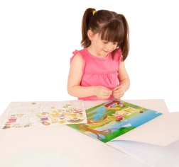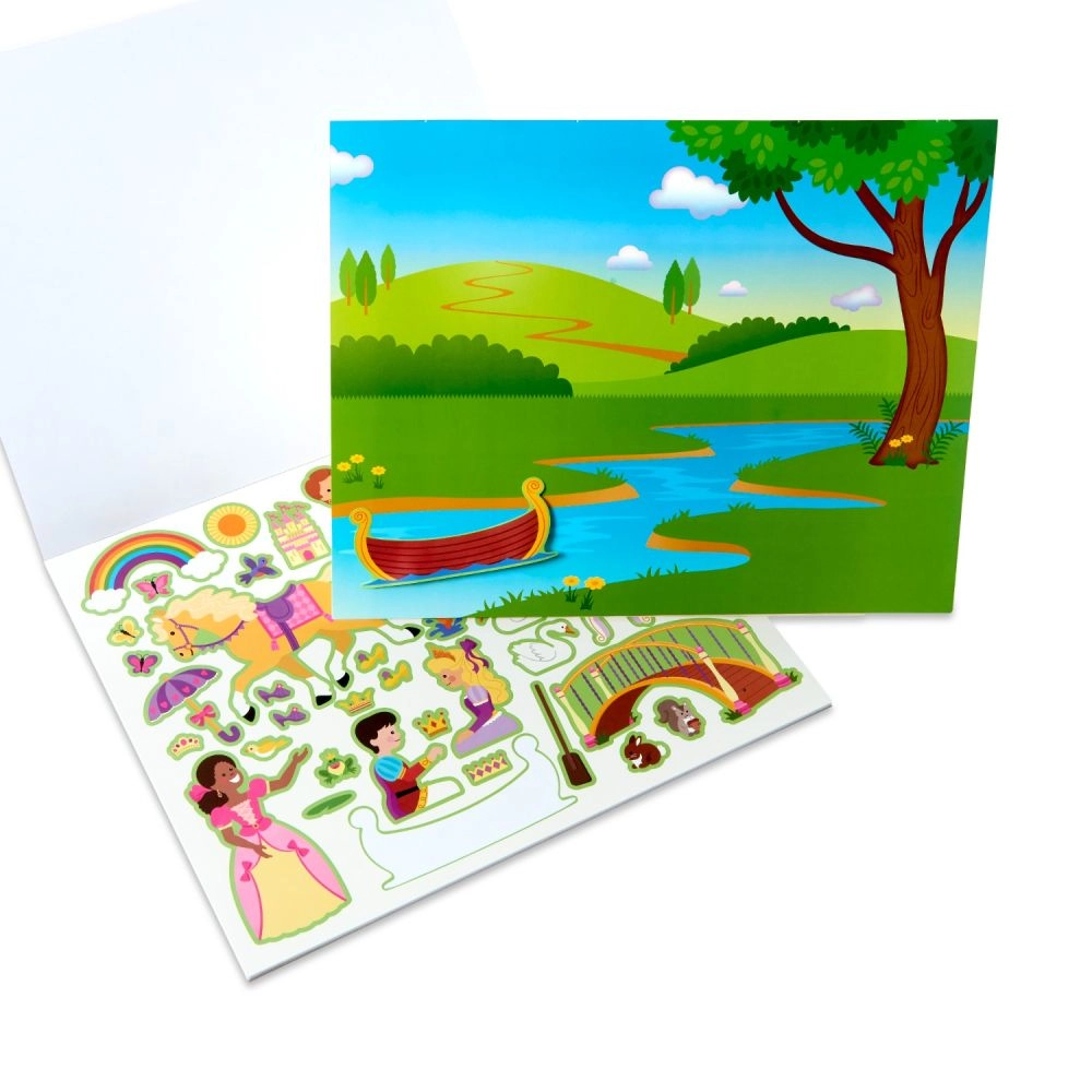 Las pegatinas se pueden pegar y mover repetidamente, para que los niños cambien la historia con facilidad y creen nuevas escenas.