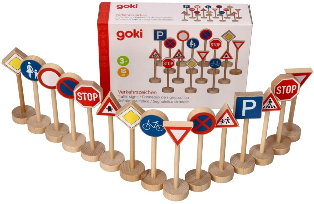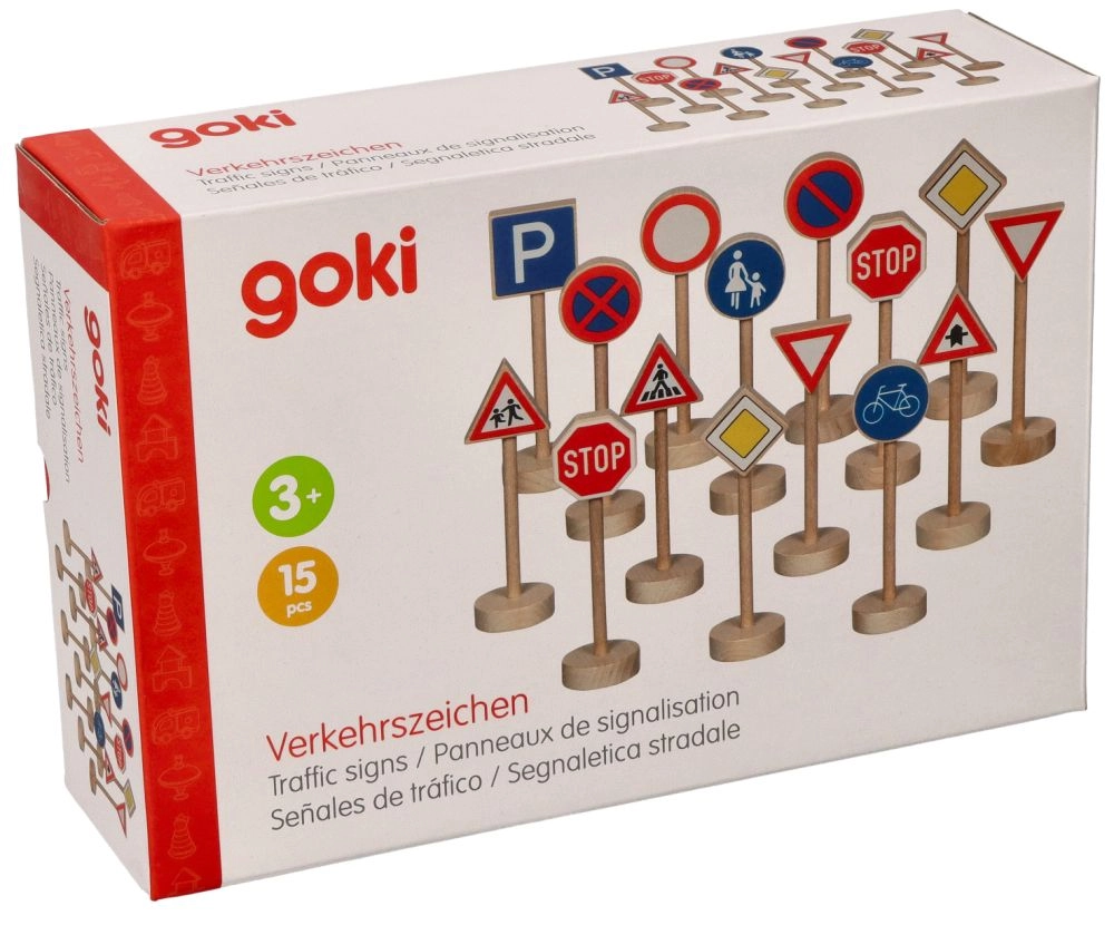 Descubra el divertido y educativo set de señales de tráfico de madera Goki, que ayuda a los niños a aprender las normas de circulación de forma lúdica. Señales robustas de madera maciza con pinturas no tóxicas, ideales para jugar con cochecitos y en pistas de autos. Son fáciles de sujetar, miden 11 cm de altura y el paquete incluye 15 piezas para crear situaciones de tráfico realistas.