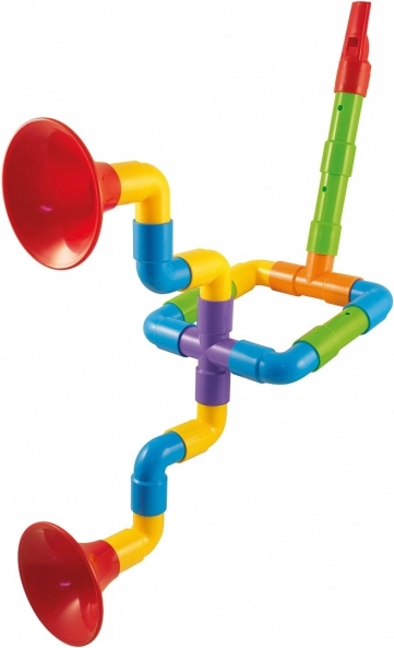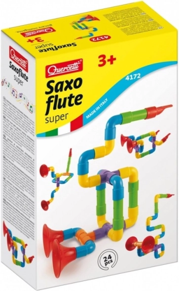 Con el set de construcción Quercetti Saxoflute Super, los niños pueden crear sus propios instrumentos musicales, como saxofones, flautas y trompetas, a partir de coloridos tubos y conectores de plástico. El set incluye 24 piezas que permiten diversas combinaciones y formas. Así, el juguete no solo estimula el pensamiento creativo, sino también la motricidad fina y la imaginación.