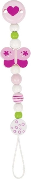 El práctico clip para chupete Goki con motivo de mariposa mantiene el chupete siempre a mano y limpio. Gracias a sus dimensiones compactas y a su fácil sujeción, es ideal para el uso diario. Sujeción segura, diseño adorable y comodidad en los desplazamientos para el bebé y los padres.