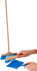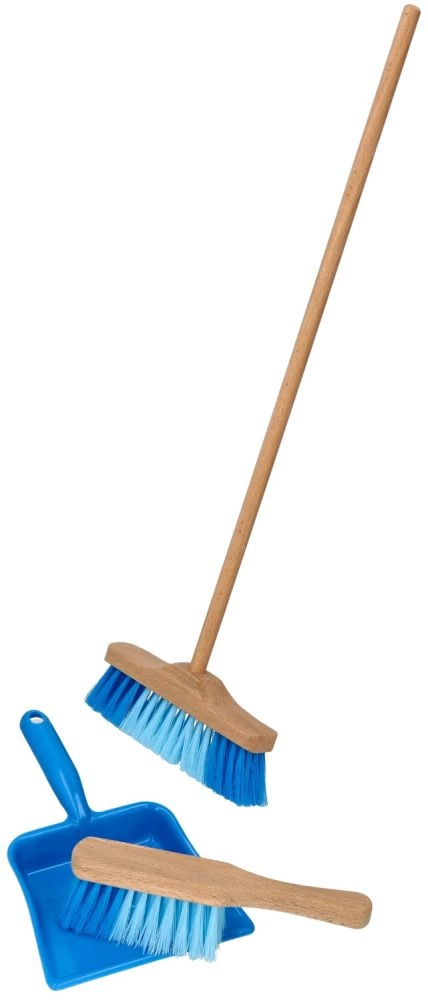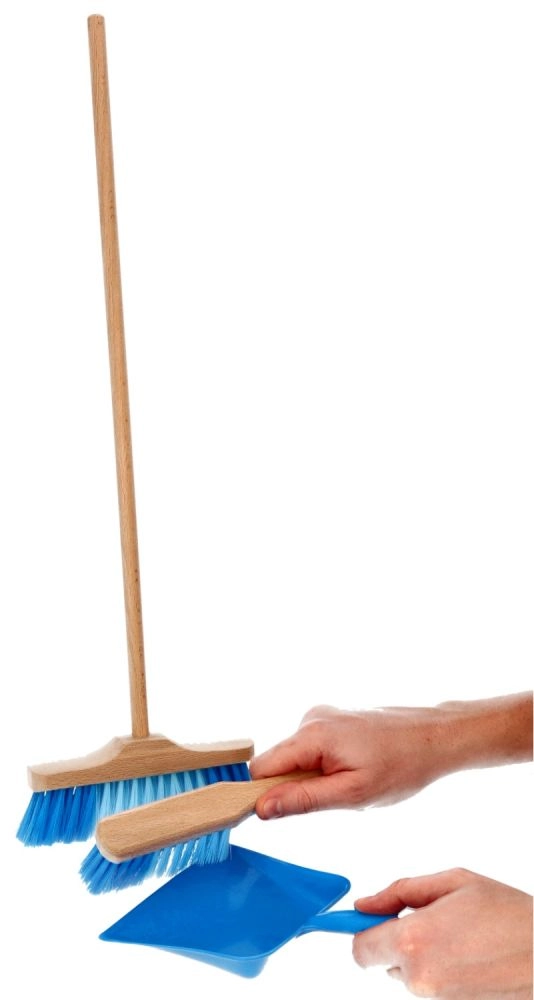 El juego incluye una escoba larga, un recogedor de mano y una pala, fabricados con una combinación de madera maciza y plástico que garantiza una larga durabilidad. La longitud de la escoba de 52,5 cm asegura un uso cómodo tanto en interiores como en exteriores.