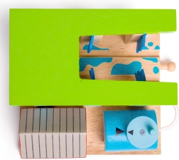 Ajusta los postes para que el tren solo pase o para que los cepillos lo “laven”. A los niños les encantará cambiar los escenarios y practicar la motricidad fina.