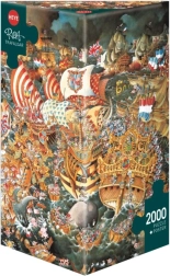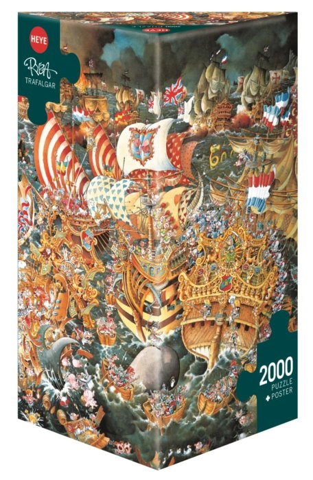 Rompecabezas Batalla de Trafalgar del reconocido caricaturista Michael Ryba te transporta a momentos históricos con una magnífica gráfica. El paquete incluye 2000 piezas y una caja triangular no convencional con un póster como referencia para el armado.