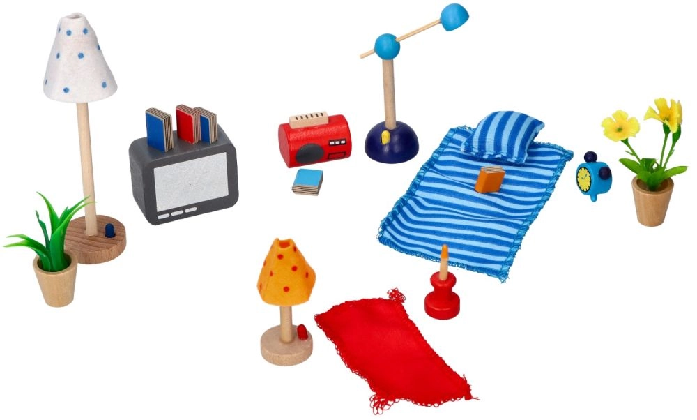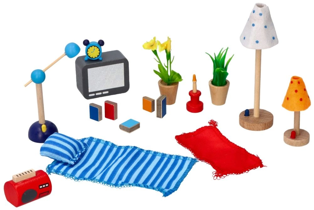 Sumérgete en un mundo de fantasía y diversión con este magnífico set de muebles y accesorios en miniatura. Este set está diseñado para niños a partir de 3 años y ofrece innumerables posibilidades para el juego creativo. Objetos de madera y plástico detalladamente elaborados como lámparas, televisor, plantas y libros enriquecerán cualquier mini habitación infantil.