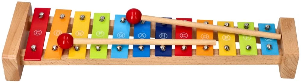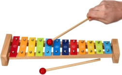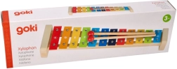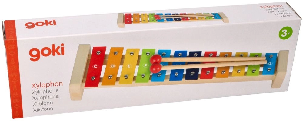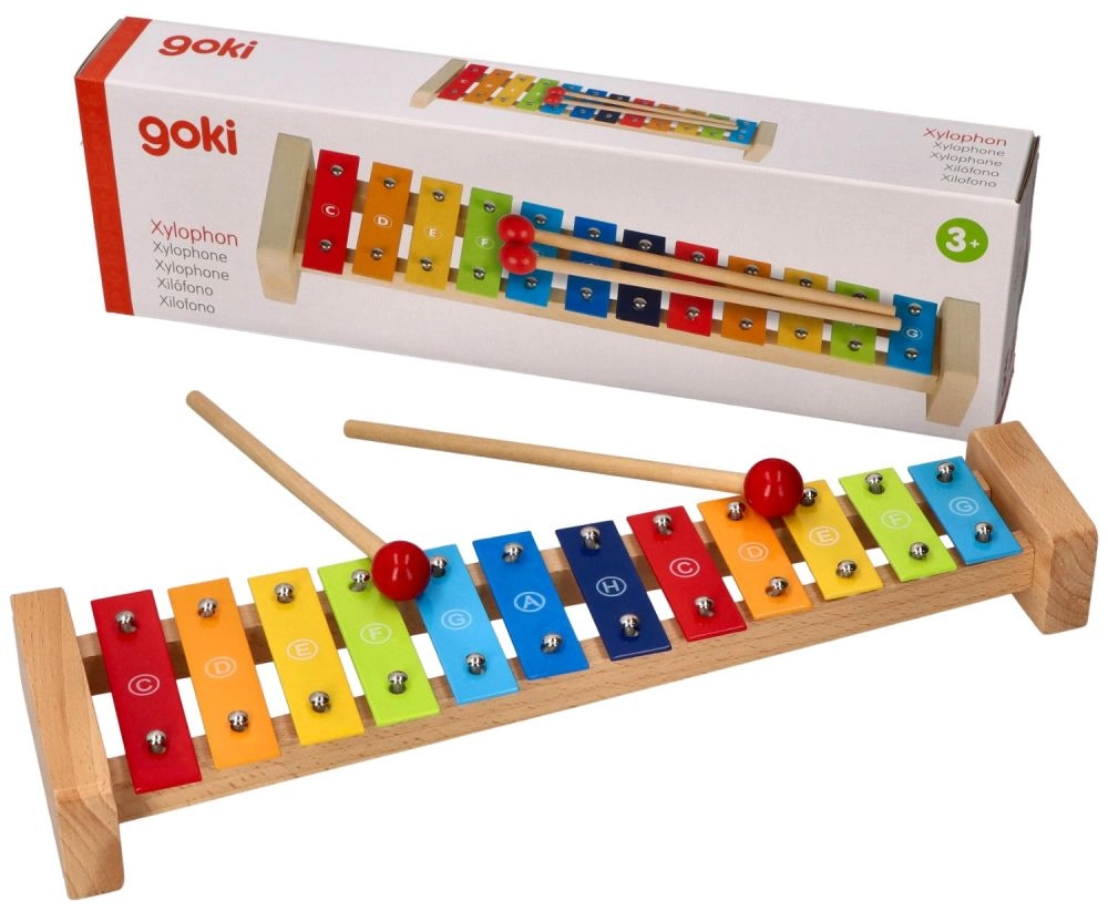El colorido xilófono Goki con cancionero Arcoíris es una excelente opción para un primer acercamiento a la música. La robusta estructura de madera combinada con teclas metálicas garantiza un sonido agradable y una larga vida útil. Gracias a los nombres de las notas en las teclas y a la guía por colores del cancionero, los niños comprenderán fácilmente la relación entre colores, tonos y melodías sencillas.
