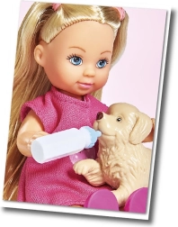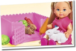 - Muñeca Steffi, muñeca Evi, 4 animalitos, mesa, caseta para perro, jaula para conejo, zona de juego y otros accesorios